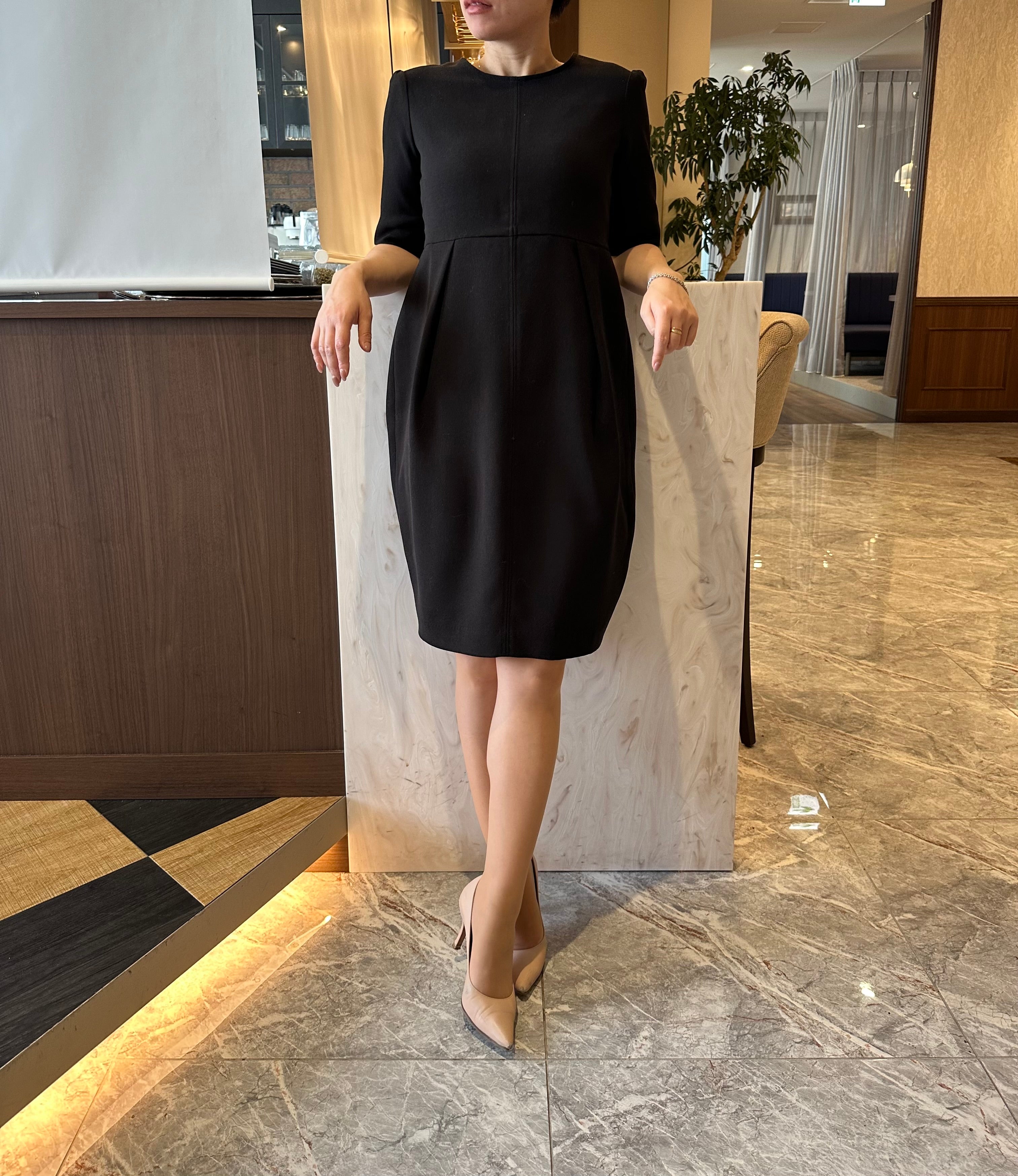 バスト下での切り替えのため、ウエストには余裕があり、ヒップラインはコクーン型になっているため動きやすいです。